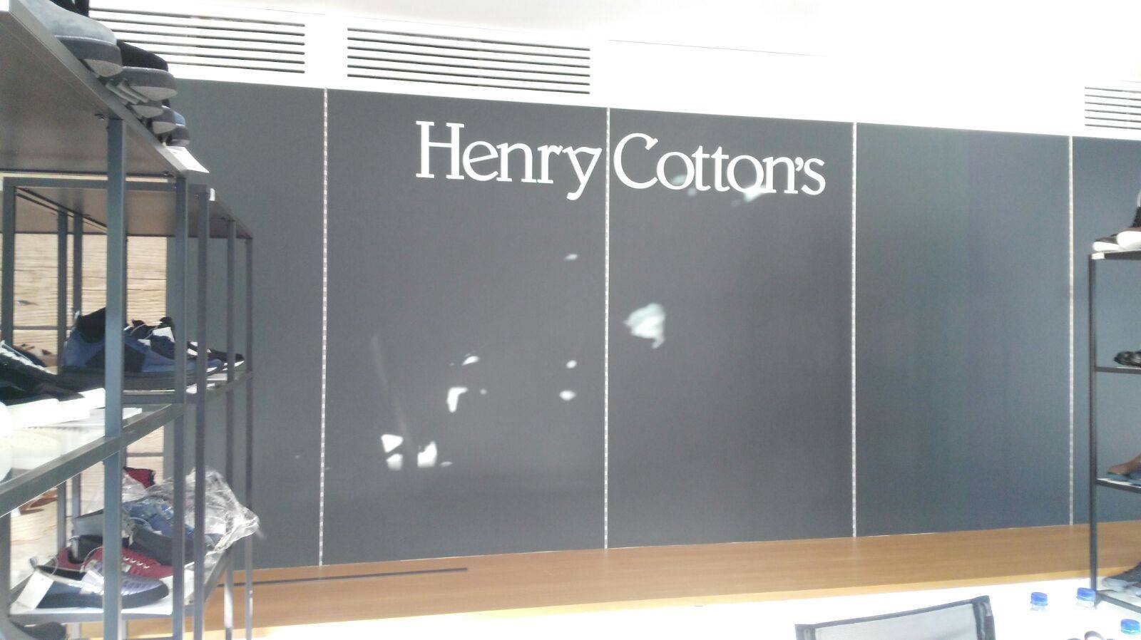 La richiesta che ci è stata fatta riguardava la decorazione delle pareti del negozio con i marchi Marina Yatching, MCS e Henry Cotton’s.